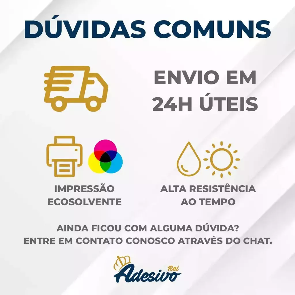 - Produzido em plotter de impressão + recorte eletrônico (produção própria) com vinil auto adesivo;