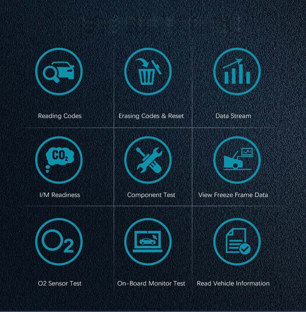 Doutor do CEL do veículo: Localize o sensor ruim do O2, desligue a luz do motor da verificação, restaure o monitor, leia dados aumentados. O scanner obd2 pode ler e apagar rapidamente DTC (códigos de falha do motor). Acesso ao status de prontidão de emissões, definições de DTC na tela, biblioteca de pesquisa de DTC integrada, permitem determinar com precisão as causas da luz do motor de verificação, e desligue o MIL (lâmpada indicadora de mau funcionamento). A aquisição e a decodificação automáticas do VIN facilitam a leitura dos códigos específicos do fabricante e dos dados aprimorados do modo 6.