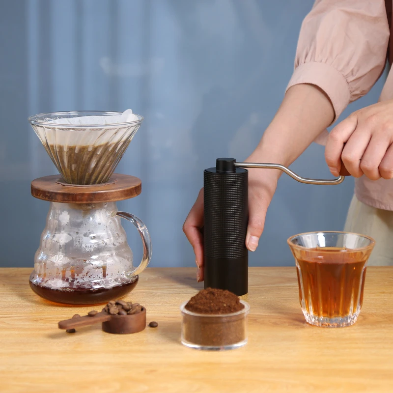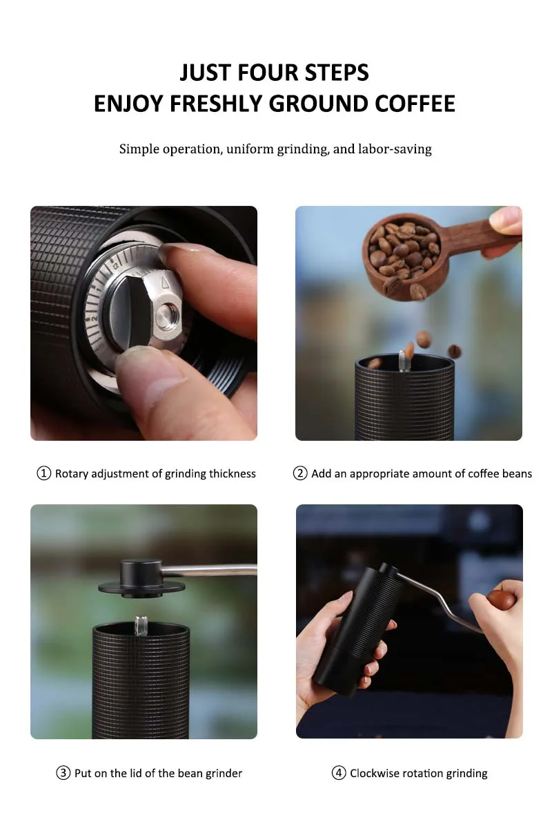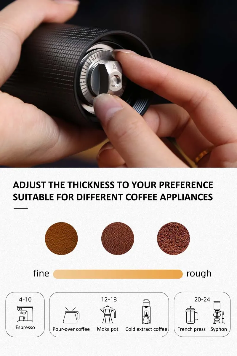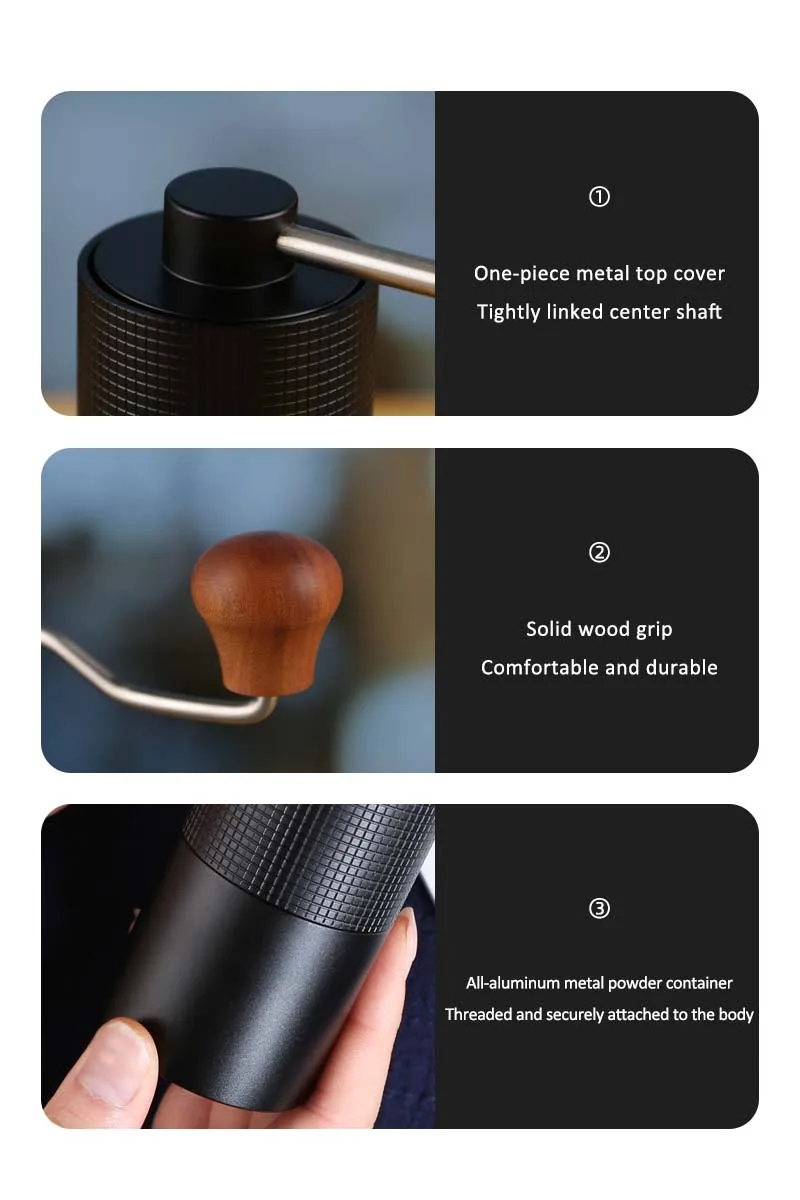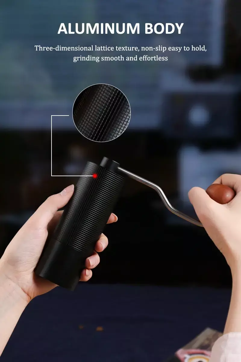Moedor de café manual profissional, atualização, corpo todo em metal, design antiderrapante, moedor portátil, rebarba dentro