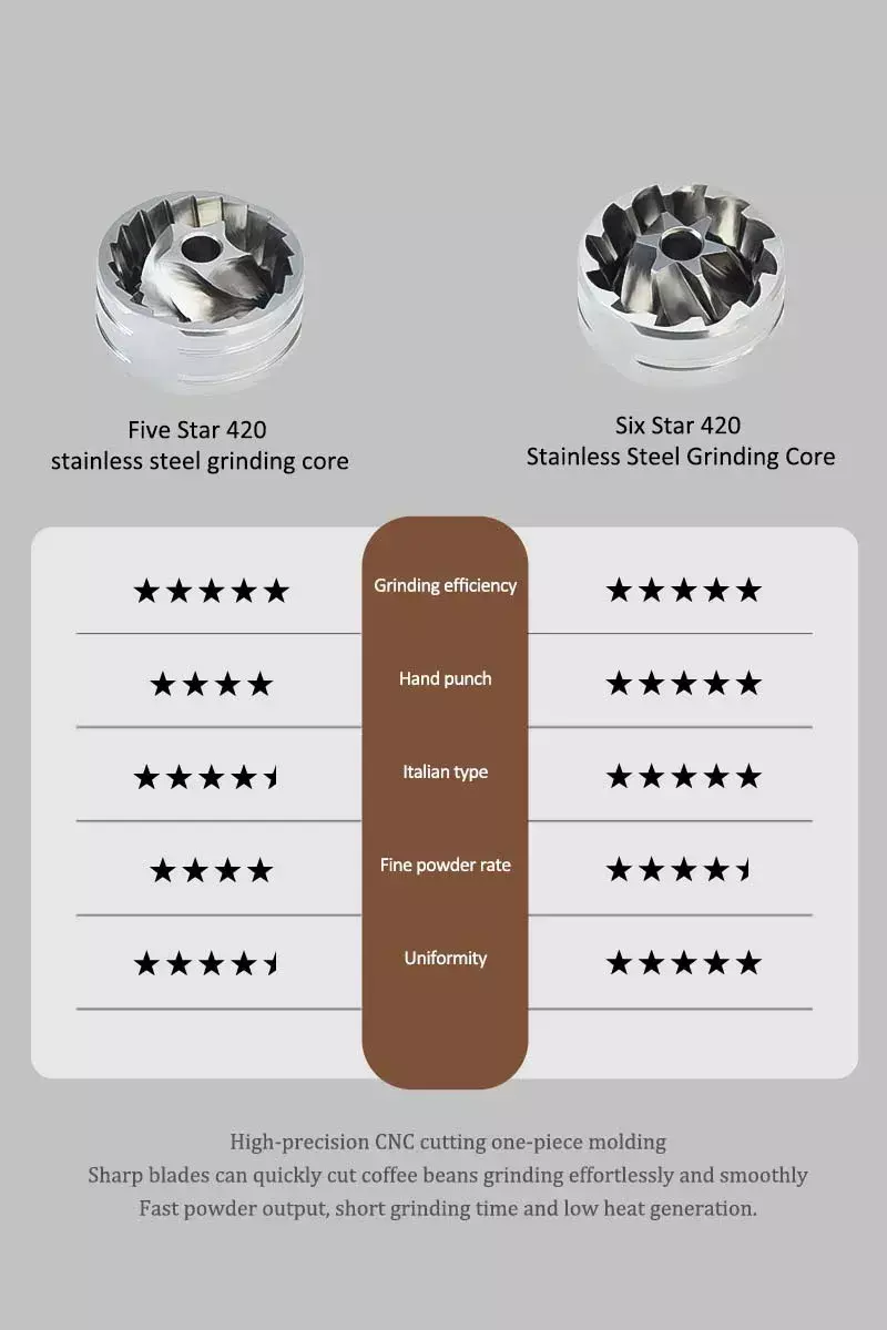 3.Adequado para café italiano e café mocha: A distância em espiral do café é mais fina e a precisão do ajuste é mais precisa